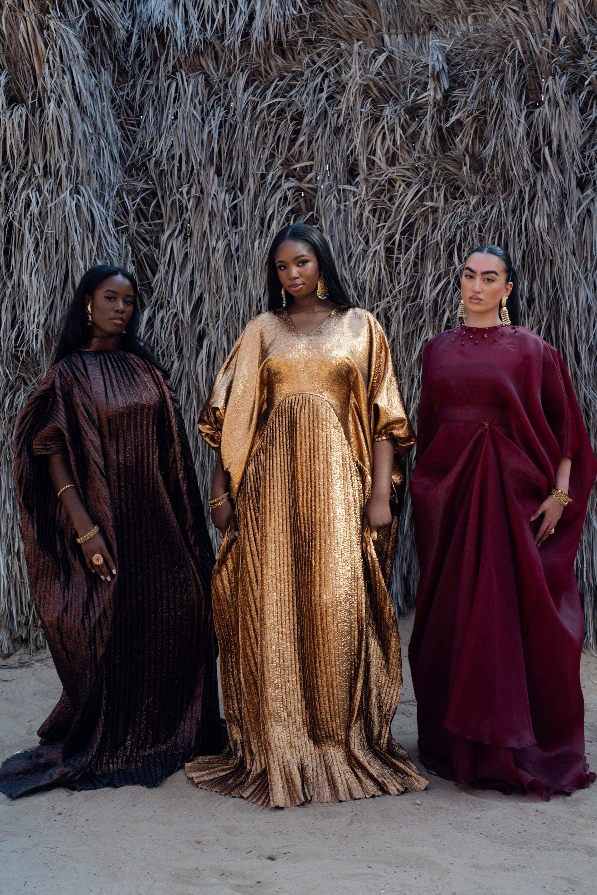 Step into the world of Sands & Majesty, the Eid collection by Mamou & Benje, where timeless elegance meets modern empowerment. Each piece is meticulously handmade from rich brocade, pleated brocade, and luxurious organza, adorned with hand-beaded details that catch the light and elevate every movement. Designed to celebrate women’s confidence, grace, and individuality, this collection combines high-quality fabrics with intricate craftsmanship to create silhouettes that are bold, elegant, and unforgettable. This Eid, wear your strength, your style, your majesty.